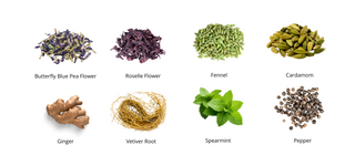Ingredients: Butterfly Pea Flower, Roselle Flower, Vetiver Root, Cardamom, Ginger, Pepper, Fennel, and Spearmint.
