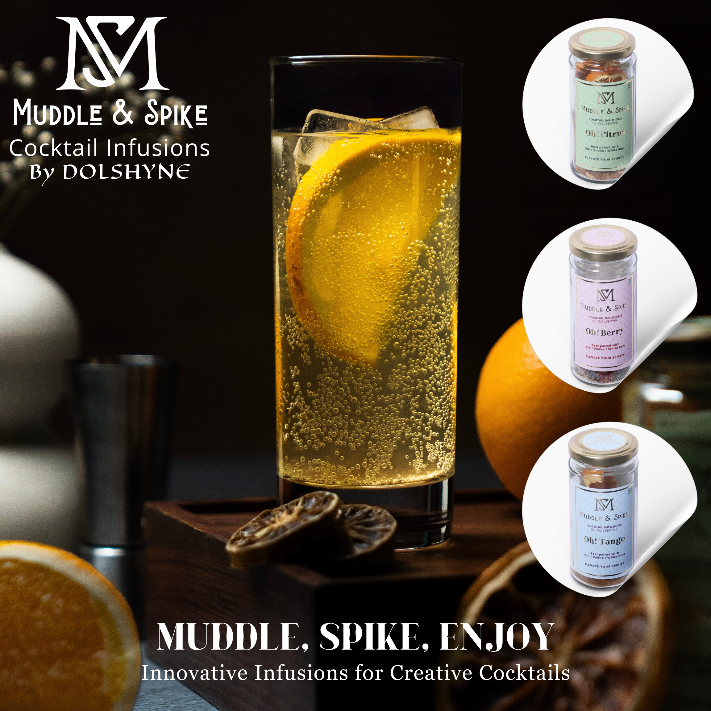 Oh! Citrus: Transform your cocktails with a zesty blend of lemon, ginger, grapefruit, and orange. This infusion is perfect for brightening up classic cocktails or crafting your own citrusy creations with a sweet cinnamon twist.